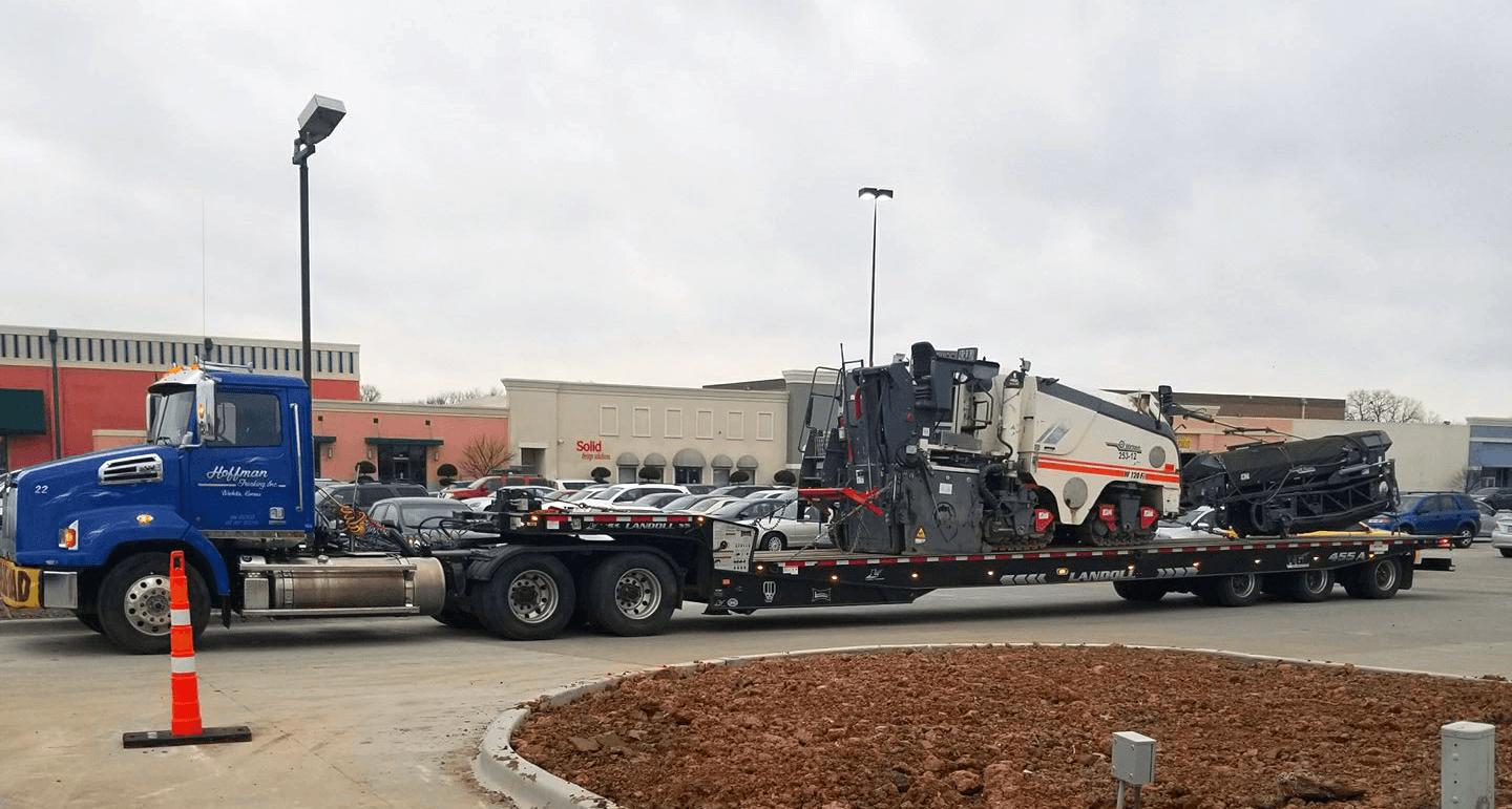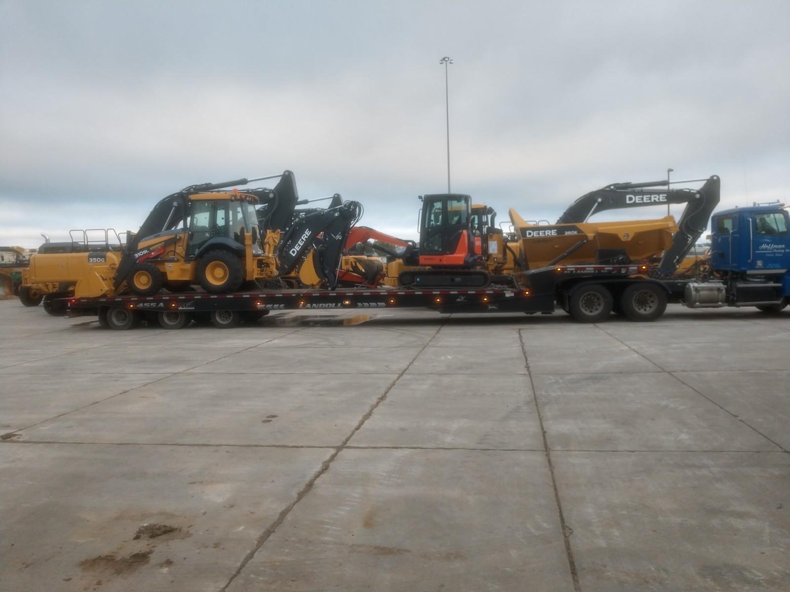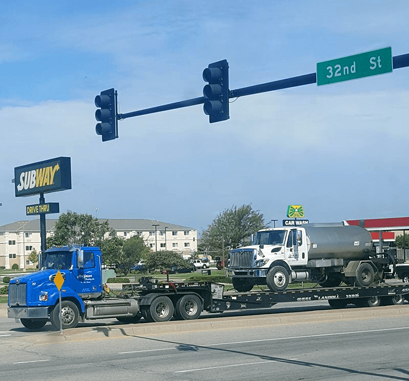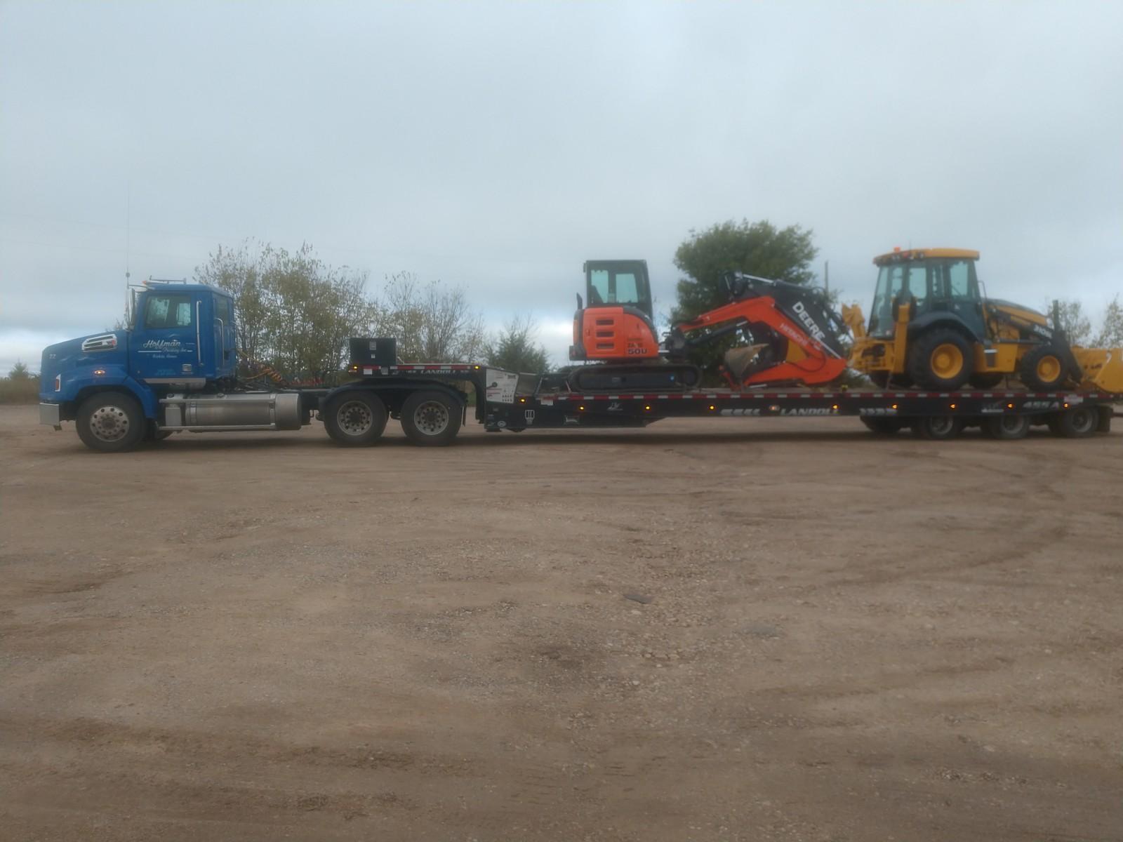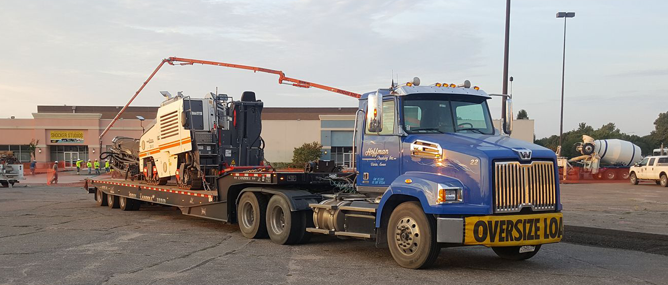 Our equipment includes 4 tractor trailers, with 4 aluminum end dumps and 1 steel barrel end dump for construction and bulk materials, 5 tandem steel bed dump trucks and 6 rough haul tandem bed trucks. We also can move your heavy equipment needs with our 53-Foot Lowboy Trailer or our 53-Foot RGN Trailer with a 24 1/2 foot well, in the state of Kansas.